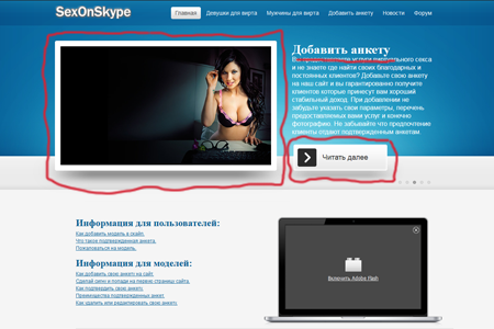 Главным преимуществом такого размещения является то что ваша анкета будет отображаться абсолютно на всех страницах сайта. И каждый пользователь который листает сайт увидит ее многократно. Такой способ рекламы вашей анкеты значительно увеличит количество ее просмотров.